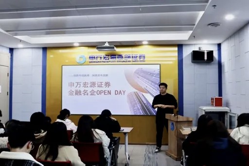 活动期间,申万宏源证券嘉宾围绕企业发展历程展开详细介绍,系统解读公司核心业务体系、行业竞争优势及关键经营数据,并带领学生实地探访办公区域,直观传递金融行业专业规范与职场氛围。在经验分享环节,2024年入职的CFA二级持证人,结合自身求职与从业经历,从学历基础、专业证书(CFA等)考取、优质实习经历积累等维度分享核心竞争力构建路径,同时针对性拆解金融行业常见风险陷阱,耐心回应参访学生关于实习招录、职业发展的疑问。