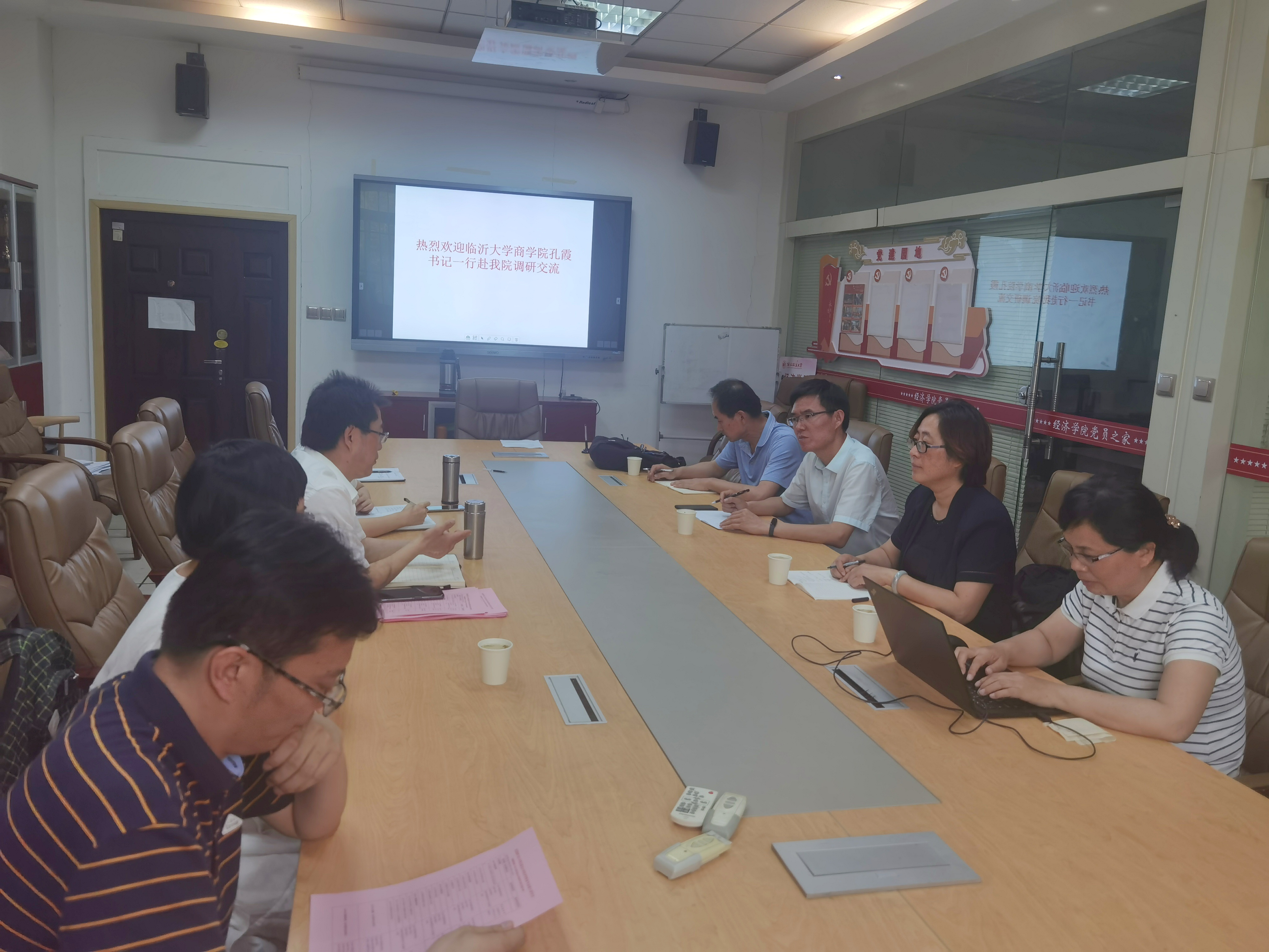 为促进交流合作、加强专业建设,5月31日上午,临沂大学商学院党委书记孔霞、院长刁玉柱、副院长吴作凤、国际贸易系主任张作良一行4人来我院调研,就国际商务专业建设及专硕项目合作等方面进行交流学习,学院副院长王胜利、副院长徐梅及国际商务硕士生导师张美云、赵新伟参加了交流座谈会。