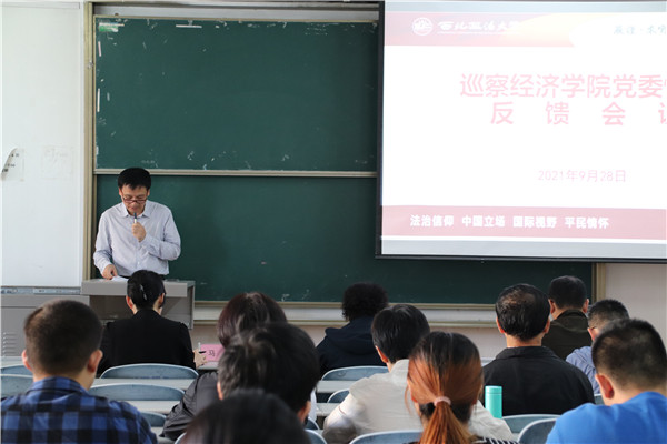 在天平A107教室举行校内巡察工作反馈会议。校纪委书记、第一巡察组组长肖道远,校组织部部长、第一巡察组副组长李燕及巡察组全体成员,赌场