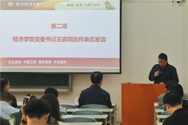 党政领导班子、全体教职工和学生代表参加会议。会议由学院党委书记王森主持。