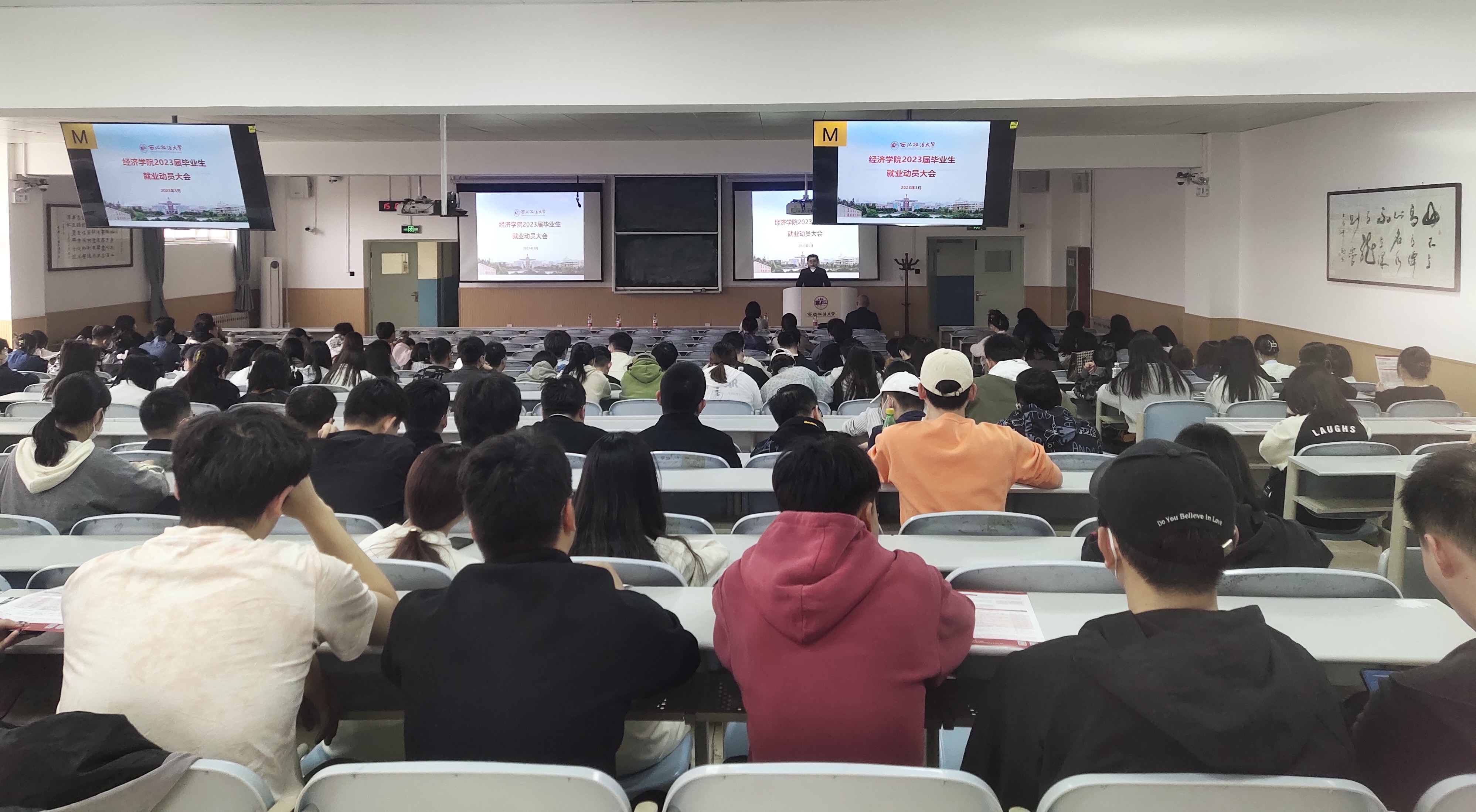 为落实教育部和省教育厅关于“春季促就业攻坚行动”的相关精神和要求,进一步推进毕业生就业工作,引导2023届毕业生紧抓就业机遇、合理规划人生,赌场 于3月15日在长安校区召开了2023届毕业生就业动员大会。学院院长王胜利、党委副书记张文渊,招生就业处杨军,国际交流与合作处武媛媛出席会议,2023届全体在校毕业生及部分2020级在校生代表参加会议。会议由2023届毕业年级辅导员周瑾萱主持。