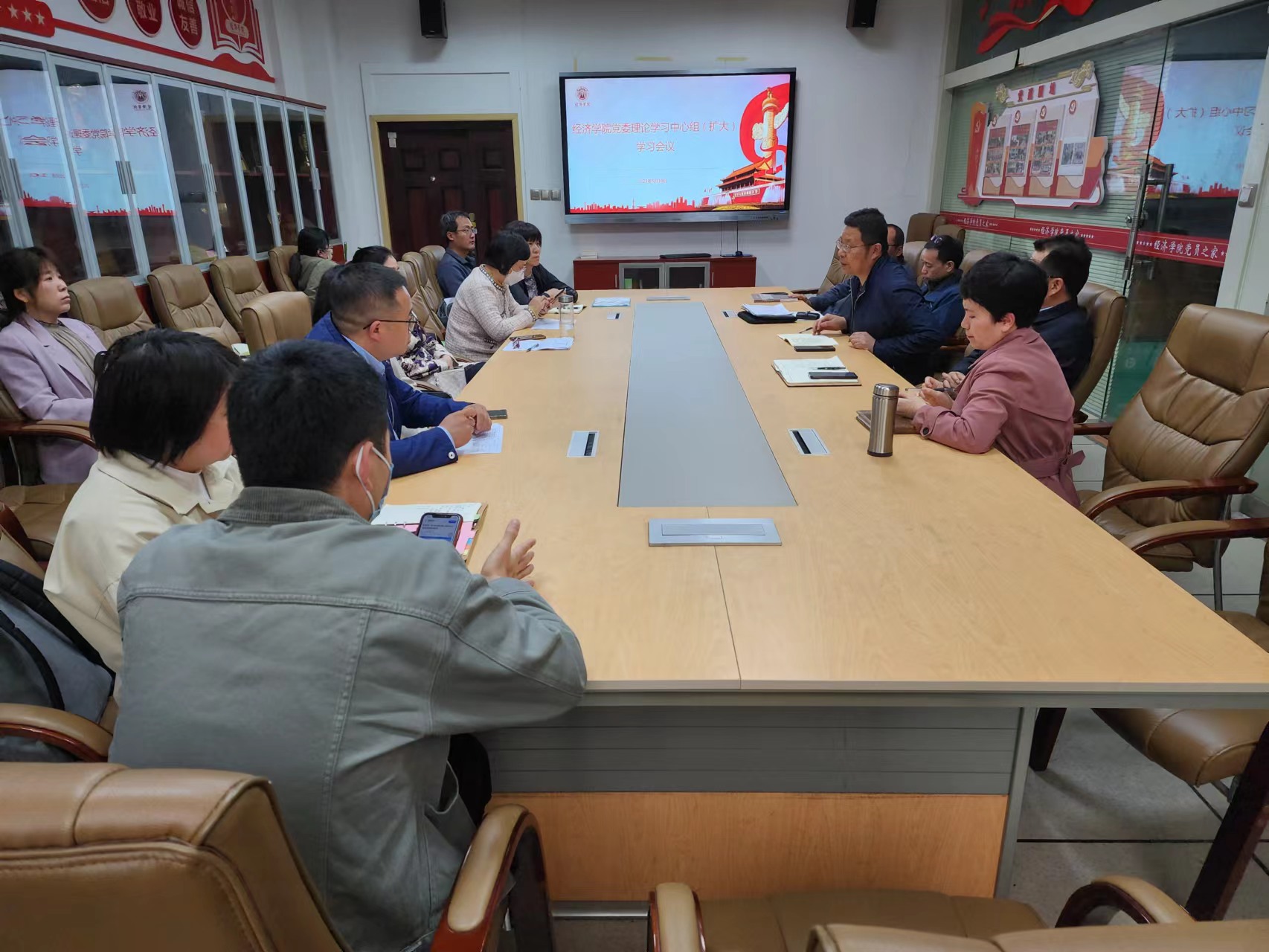 5月10日下午,赌场 党委在长安校区关天会议室召开理论学习中心组(扩大)学习会议暨主题教育工作推进会议,学院班子成员、党支部书记、系(部)主任、教师代表参会,会议由党委书记王森主持。
