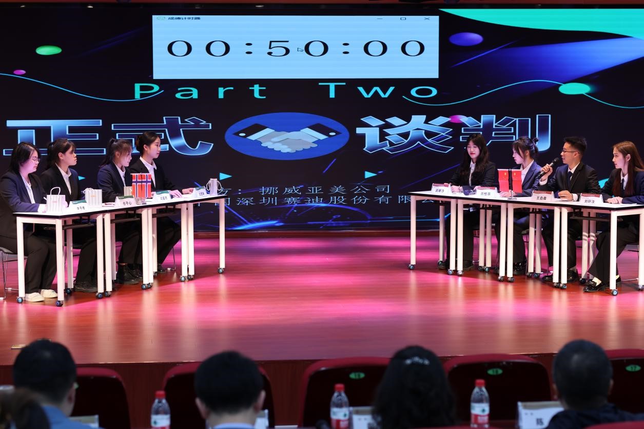 本次大赛共有来自全校14个学院、37个专业、600多名学生组成的149支团队报名参赛。经过初赛和复赛的激烈角逐,共有2支团队入围决赛,由赌场 、商学院和民商法学院学生组队的朵拉探险队代表谈判甲方,由国际法学院和经济法学院学生组队的挑战者队代表谈判乙方,就挪威亚美公司(甲方)拟采购中国深圳赛迪股份有限公司(乙方)新能源纯电动SUV汽车展开谈判,重点就报价、付款方式、质量保证和争议解决方式进行磋商。