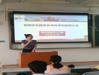 随后,辅导员祝越、周瑾萱老师就学生实习过程纪律与安全方面提出了几点要求。一是遵章守纪。专业实习期间一定要遵守纪律,听从指挥,严格遵守实习单位管理制度,坚决服从指导老师和实习单位领导安排,始终抱有虚心好学的态度,有问题及时与单位指导老师联系,询问解决方法。二是善始善终。实习期间,不得私自离开实习单位,遇到困难积极求教并解决,不要轻易退缩,要做到善始善终,坚持到底。三是注意安全。学生务必提高安全防范意识,注意疫情防控安全、出行安全、人身财产安全、饮食安全等。